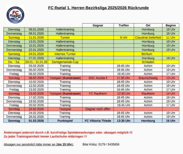 Spielpläne Herren- und Frauenbereich FC Ilsetal 2024 Saison 2025/2026